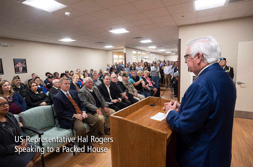 The VA Clinic opened the doors of its new facility for tours and guest speakers on Wednesday, October 24th. Construction of new VA Clinic has drawn a tremendous amount of interest over the last year, and the crowd was standing-room-only as dignitaries delivered their remarks. Speakers included Congressman Hal Rogers, Lexington VA Medical Center Director Emma Metcalf, and lead architect on the project, Derek Phillips of Deco Architects. Below are a few images of the event.